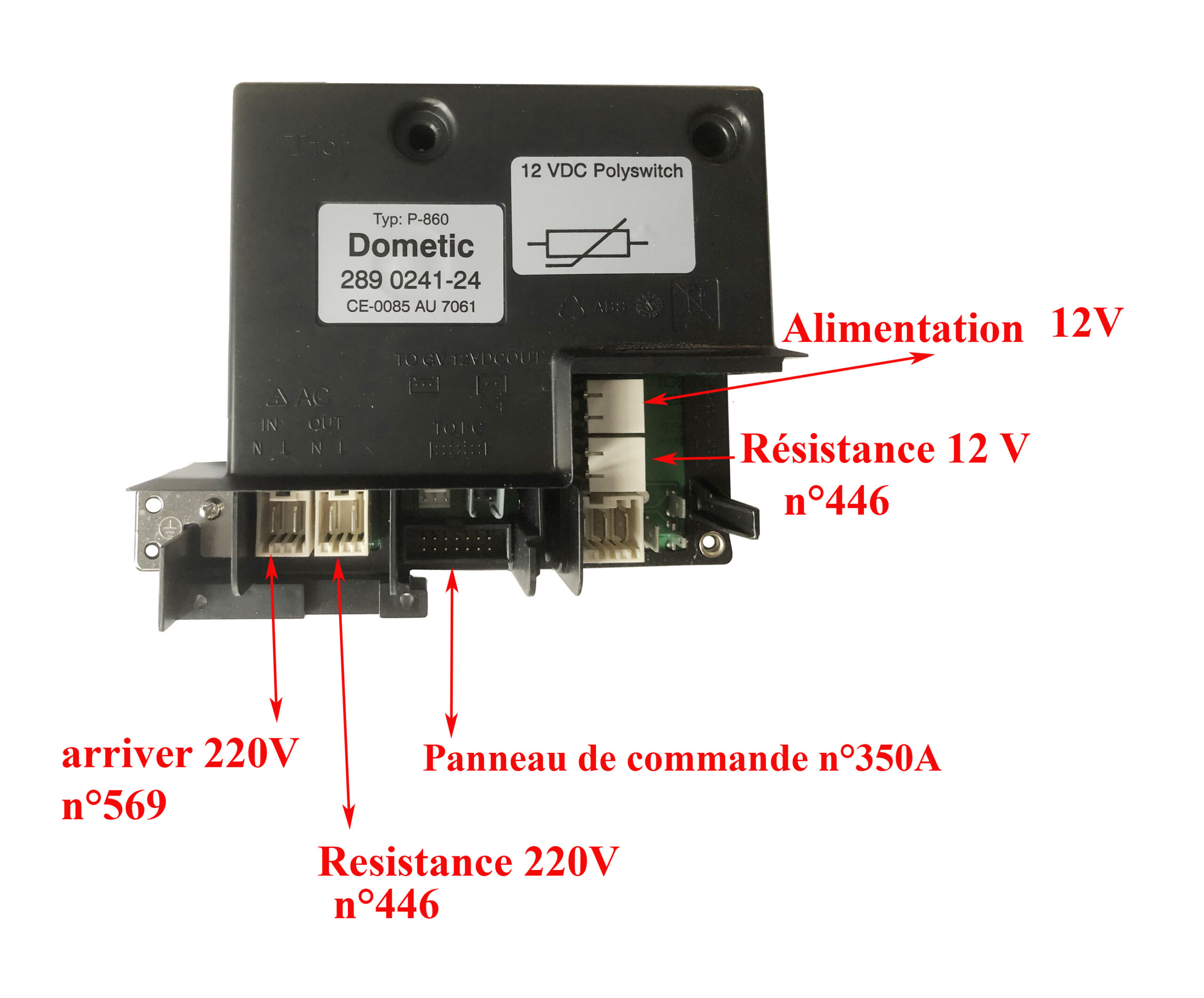 Electronique de puissance au dos du refrigerateur Dometic sur lequelle est connecter