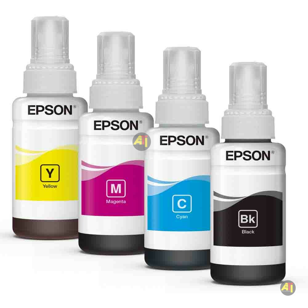 Jeu d’encre liquide de recharge pour Imprimantes Epson EcoTank – 4 boites de 70ml [ Noir, Cyan, Jaune, Magenta ]