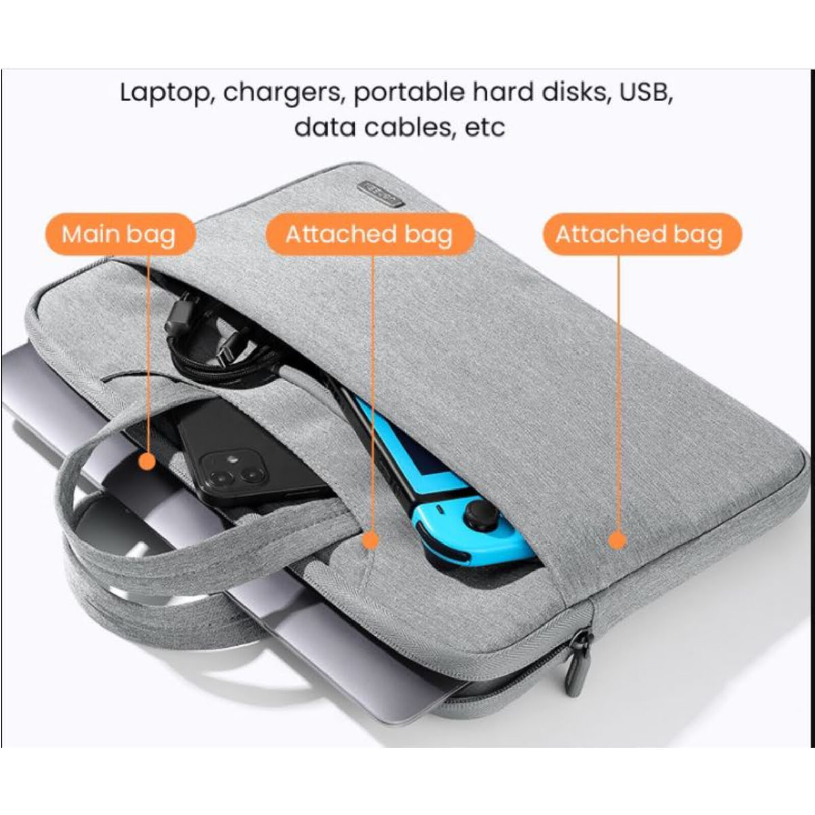 Dotée d’une poche extérieure, vous pouvez ranger vos accessoires essentiels tels que chargeur, souris ou câbles, vous permettant ainsi de rester organisé et productif lors de vos déplacements.