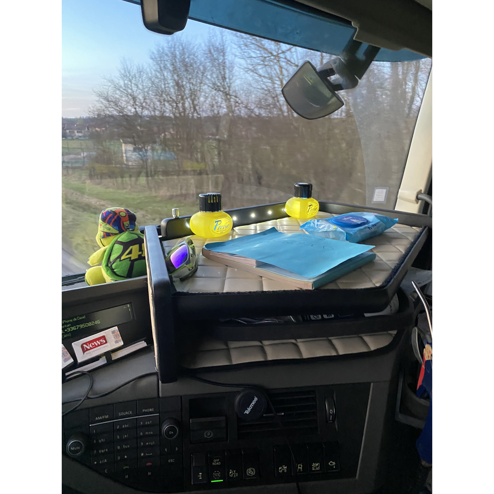 Tablette centrale élégance avec led Volvo FH4 pour les modèles produit entre 2013 et décembre 2019 – la tablette comporte un delais de FABRICATION 4-5 SEMAINES car fabriqué à la demande.